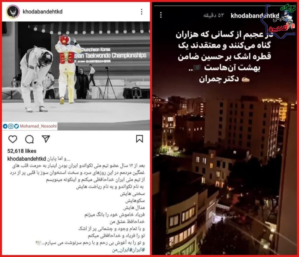 🔺خانم اکرم خدابنده کاپیتان تیم ملی تکواندو که در ایام اغتشاشات در حمایت از آشوب طلبان از تیم ملی خداحافظی کرده بودن الان یه استوری دروغ منتشر کردند از شهید دکتر چمران!
