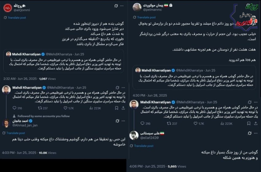 کاربران فضای مجازی در تجربه مشابهی اطلاع دادند که طی روزهای اخیر تلفن همراهشان با افزایش حرارت و مصرف باتری همراه بوده