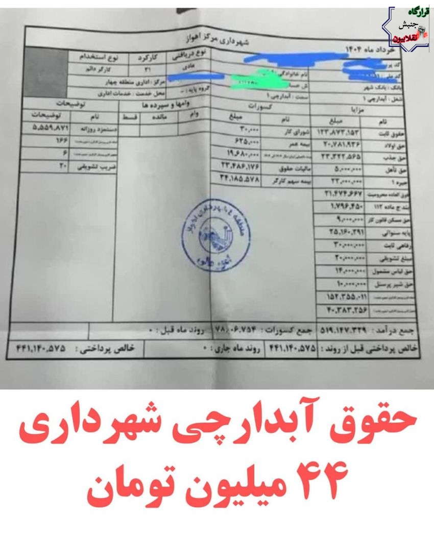 فیش حقوق ۴۴ میلیون تومانی آبدارچی شهرداری